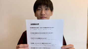 今までの所とは違い、施術の効果を実感する事ができました。施術だけじゃなくて自宅や職場でできるセルフケアも教えてもらえます。